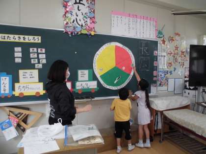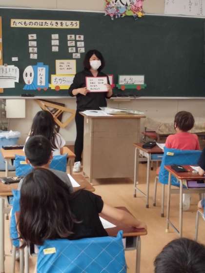 今日は、3時間目に栄養指導を栄養士の先生にして頂きました。給食の献立を赤、みどり、黄色に分けました。