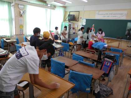 一学期間を終えて、溜まった汚れを隅々まできれいにしています。普段はあまり拭かない椅子や机の奥のほうまで丁寧にそうじをしていました。