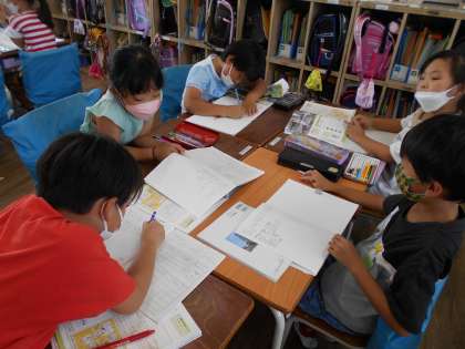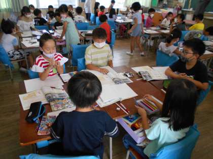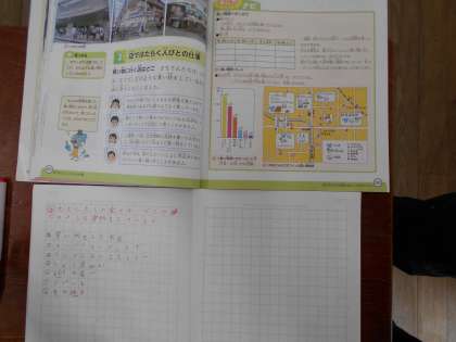 社会科の学習では、普段どんなところで買い物をしているか、お友達と意見を交流しました。
