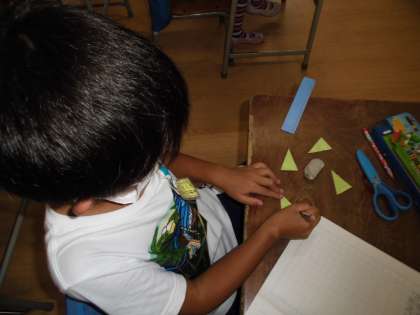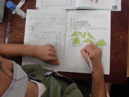 算数科で「三角形と四角形」の学習に入りました。三角定規のご用意ありがとうございました。
