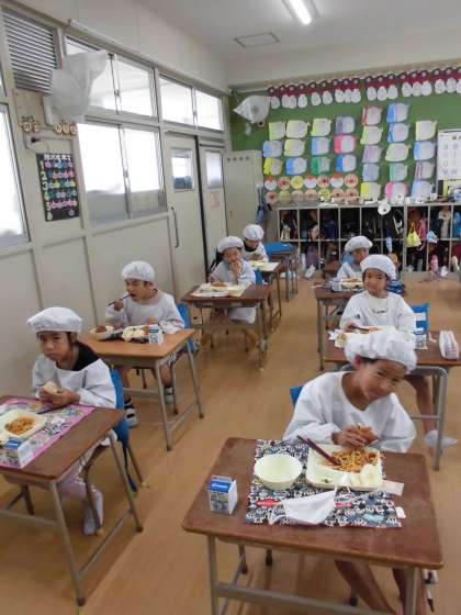 今日の給食は、イタリアンスパゲティでした。とてもおいしくいただきました。