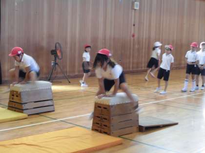 体育館で体育をしました。久しぶりに跳び箱の練習をしました。どんどん練習をしてみんな跳べるようになりました。