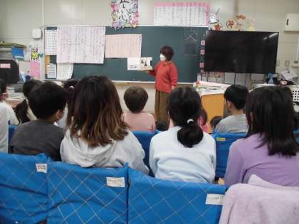 コロナの影響で、なかなかできなかったおはなし会が今日ありました。住吉絵本の会の皆さんが来てくださいました。
