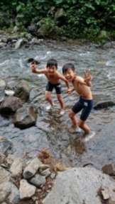 川遊び&魚つかみの続きです。子どもたちの笑顔がまぶしいですね!