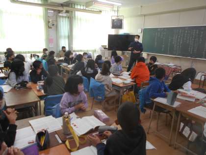 国語ではグループで調べ学習をしています。今日は、調べ方を先生に説明してもらって、テーマを決めています。