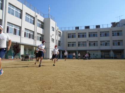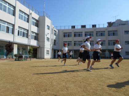 6年生は準備体操の後にかけあしを行っています。寒さに負けない元気な体をつくってほしいですね。