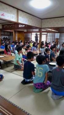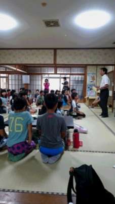 今日は、残念ながら雨が降っているようです。朝会をキャンプファイヤー場で行う予定でしたが、急きょ大広間で行うことにしました。