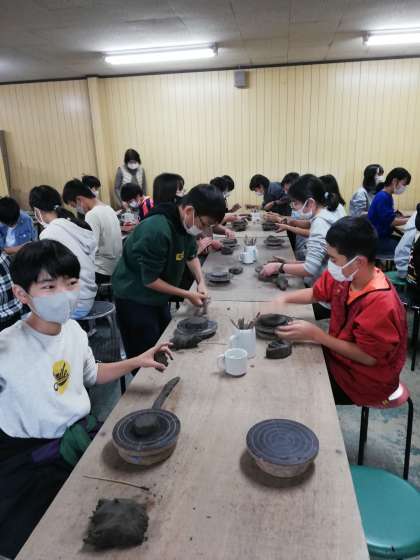 みんな、陶芸体験頑張ってます。