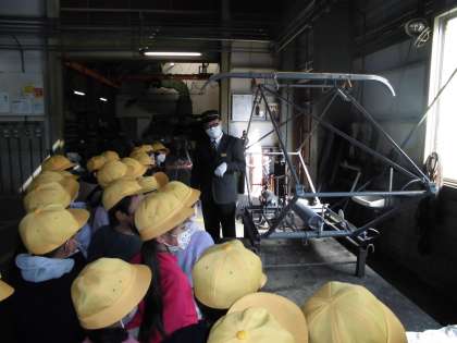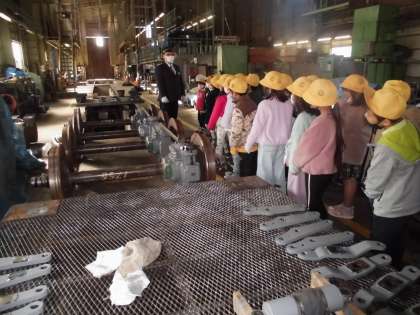 工場見学をしました。鉄でできている車輪や線路の説明をしていただきました。
