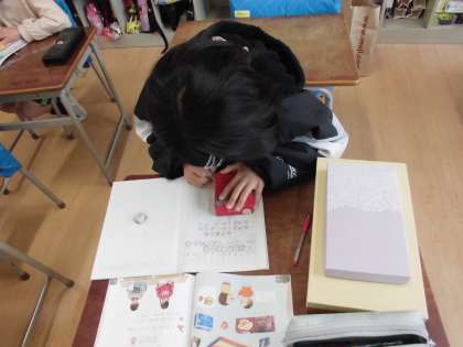 算数科で「はこの形」の学習に入りました。今日は、箱の面をノートに写し取って面の形と数を調べました。箱のご協力ありがとうございました。