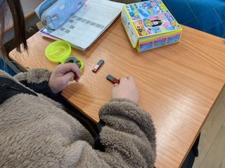 S極とN極を習ったあと、性質について実験。引き合う、しりぞけあう様子に目を輝かせていました。