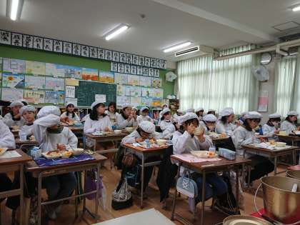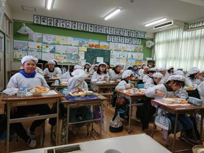 今日は押し麦のグラタンと豚肉と野菜のスープ、いよかんでした。