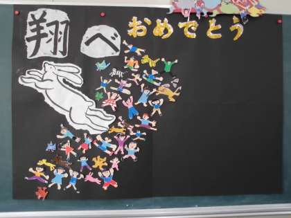 六年生のご卒業に向けて、玄関掲示を今までの感謝の気持ちとお祝いの気持ちを込めて作っています。