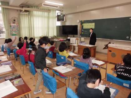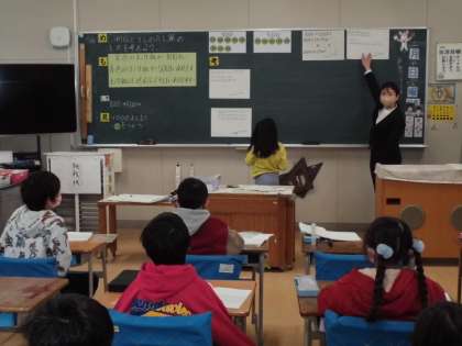 三時間目に算数の授業で折り紙を使って何百たす何百の計算を学習しました。