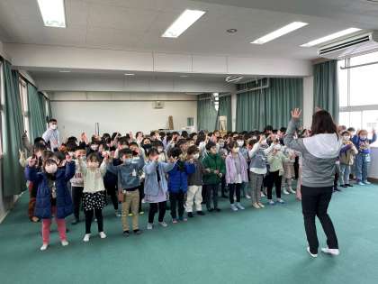 多目的室で手話の練習をしました。そのあと、歌と楽器と手話を合わせました。元気がいっぱいです。