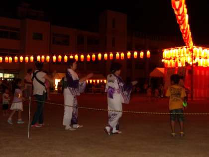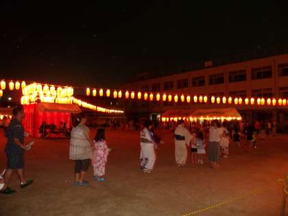 少し雨がパラパラしてきましたが、盆踊り大会は盛り上がっています!