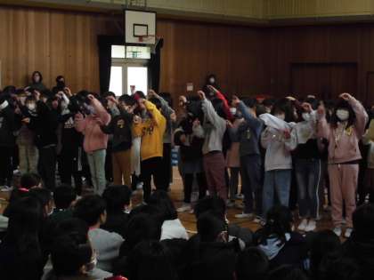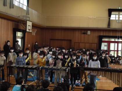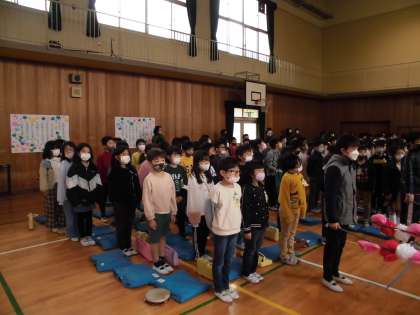 今日は、2時間目に六年生を送る会を体育館でしました。