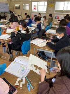 立方体の展開図の学習をしました。どの展開図が立方体になるのか、実際に作って確かめました。