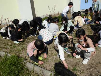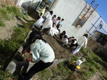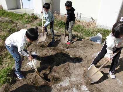 来年に向けて学習園の草抜きをし、石灰と肥料を混ぜました。