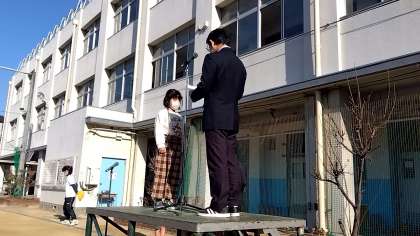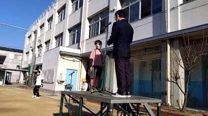 全校児童に見守られ、校長先生から賞状を堂々と受け取っていました。
