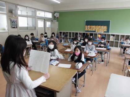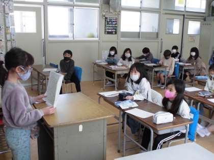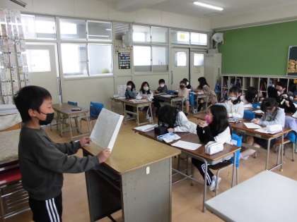 国語科で「好きな場所を教えよう」の単元を学習しています。発表原稿を書いて今日は、みんなの前で発表しました。