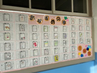 図書館前に「おすすめの本」を掲示しました。一年間でたくさん本を読みました。