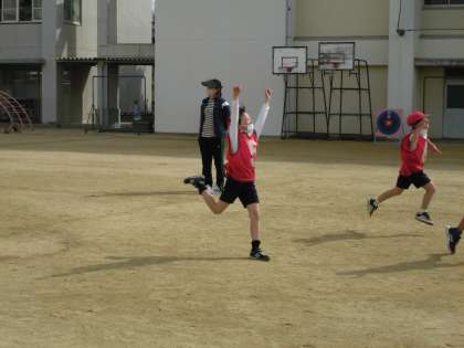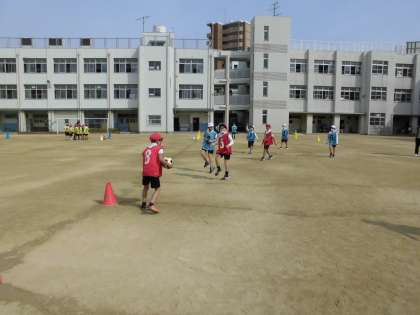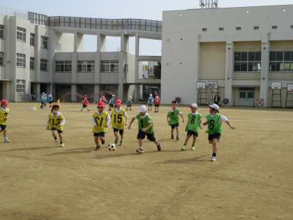 今日は体育で、サッカーの試合をしました。ボールを追いかけて、ゴールしました。