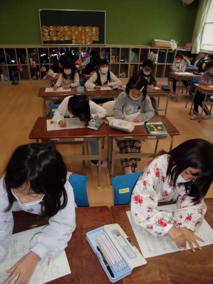 二年生の漢字のまとめのテストに取り組んでいます。毎日50問のテストに取り組んでいます。