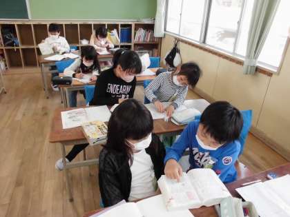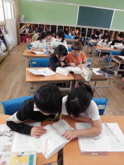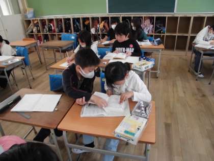 国語科の学習で、国語辞典を使ってお友達と協力して意味調べをしました。