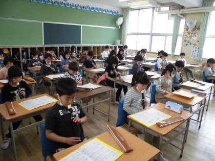 初めてのリコーダー「シ」の練習から始めています。