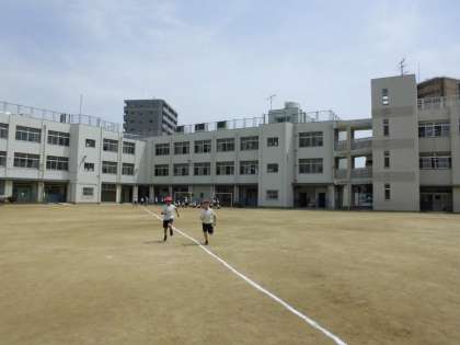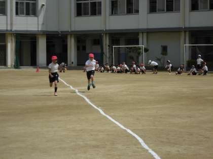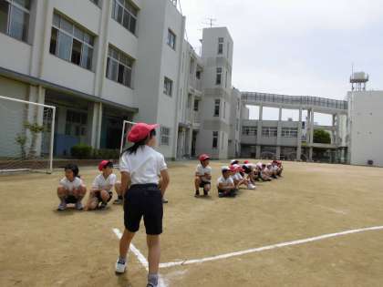 今日の体育では、50メートルのタイムを計りました。みんな一生懸命走り切りました。ソフトボール投げの練習もしました。