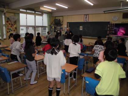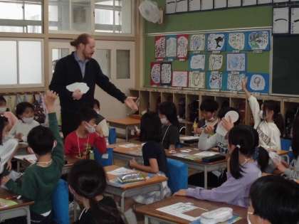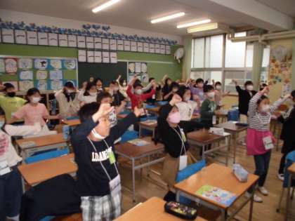 キャメロン先生の母国であるオーストラリアの紹介をしていただいたり、初めの挨拶の仕方を練習しました。
