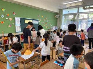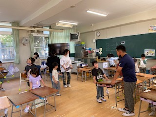 初めて教室の掃除をしました。6年生のお兄さんお姉さんが優しく手伝ってくれました。