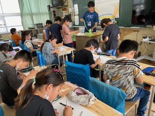 書いた半紙を挟む習字ばさみを自分で作りました。すきな絵も描きました。