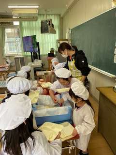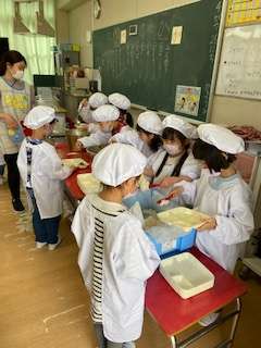 月曜日から自分達で運び始めた給食。配膳も頑張りました。明日は、1年生は給食参観です。是非、可愛い姿をご参観ください。