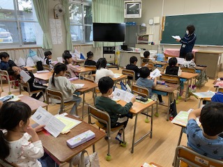 1年生は5月16日(火)に初めて遠足に行きます。しおりの説明を聞いてワクワク。きちんと連絡袋にも入れるのもお勉強です。
