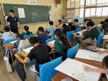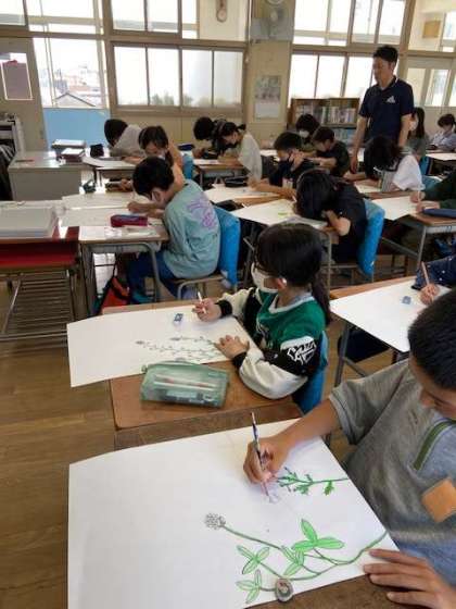 先日描いた草花に、遠近感が出るよう家を描きました。