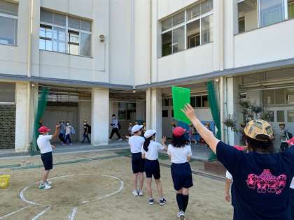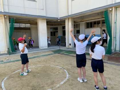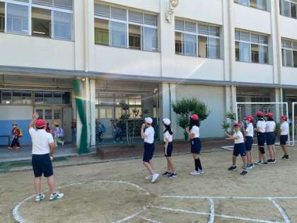 「行ってきまーす」「行ってらっしゃーい」6年生が声をかけて手を振ってくれました。