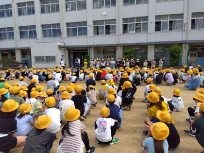 みんな全校児童の前で意気込みを喋っていました。