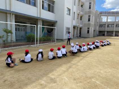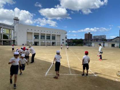 1年生にとって初めての50m走。力いっぱい走ったよ。