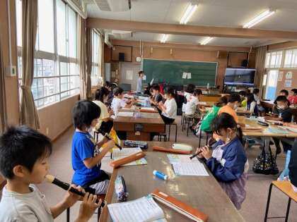 リコーダーと歌を合わせてみました。綺麗に重なり合っていました。
