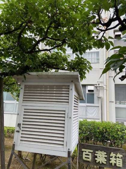 百葉箱のそばの梅の木をよくよく見てみると…梅の実がたくさんなっていました。