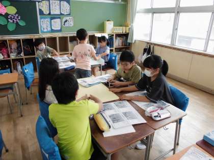 昨日見学に行ったあべのハルカスについてグループで新聞を作っています。