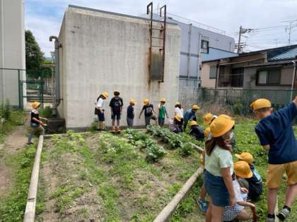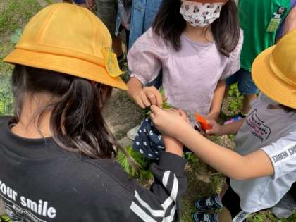 5月に学習園に植えた、ホウセンカ、マリーゴールド、ヒマワリはすくすく育っています。今日は植物の体のつくりである「根」「くき」「葉」について学習しました。