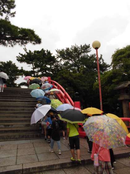 小雨の中、住吉大社の太鼓橋を渡りました。