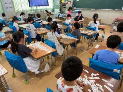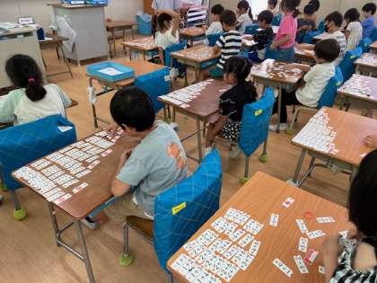 いよいよたし算カードの学習に入りました。輪っかを外し、規則に従って並べてみました。