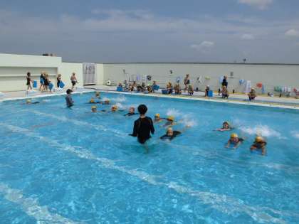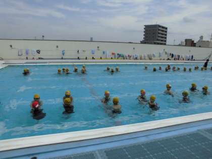 今日もプールに入りました。ふし浮き、バタ足の練習をしました。