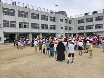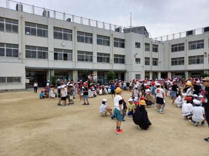全校児童が運動場でゲームを楽しみました。