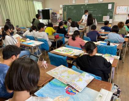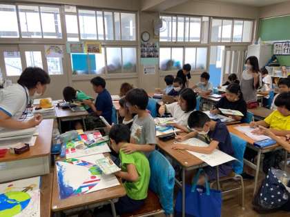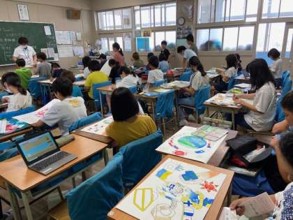 世界が平和でありますようにと想いをこめて、丁寧にポスターを描いています。