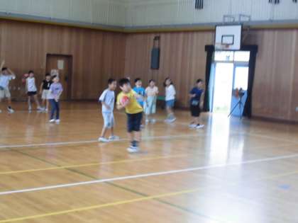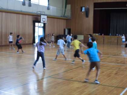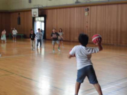 今日は、体育館でドッチボールをしました。たくさん汗をかきました。